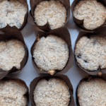 - In a small bowl, make your crumble topping and sprinkle on top of each muffin