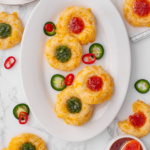 If you’re looking for a holiday appetizer that feels a little unexpected but still completely festive, these Cheesy Thumbprint Cookies with Red & Green Pepper Jelly are it. They’re buttery, savory, and packed with sharp cheddar, with a sweet-spicy pepper jelly center that adds just the right amount of contrast.