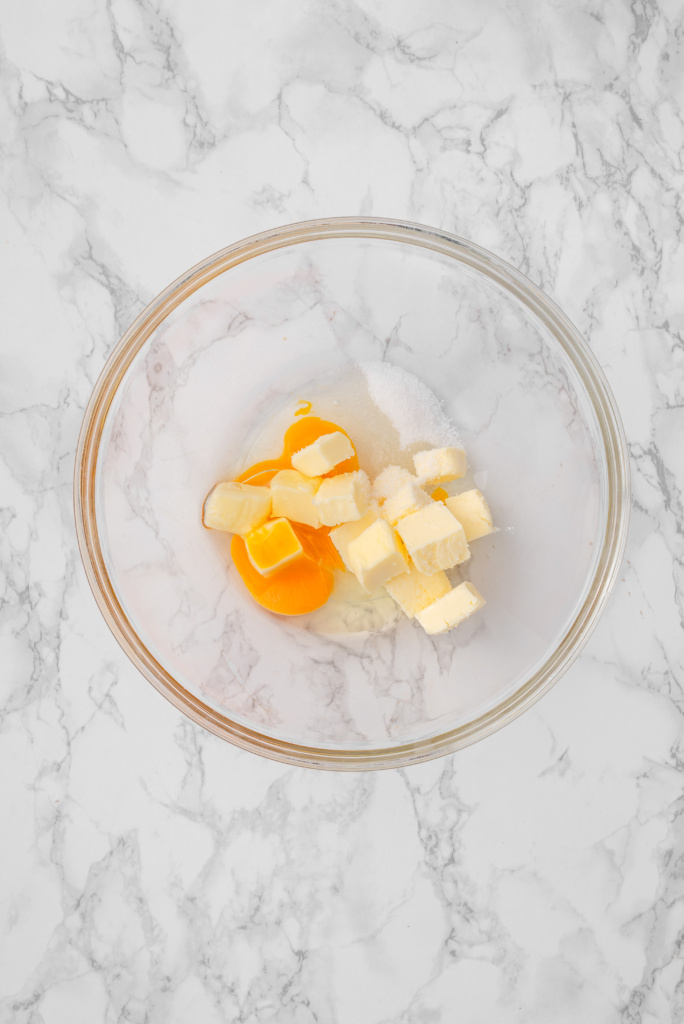 In a mixing bowl, beat the softened butter, egg, and coconut sugar until combined. Small specks of butter are completely fine and add flavor.