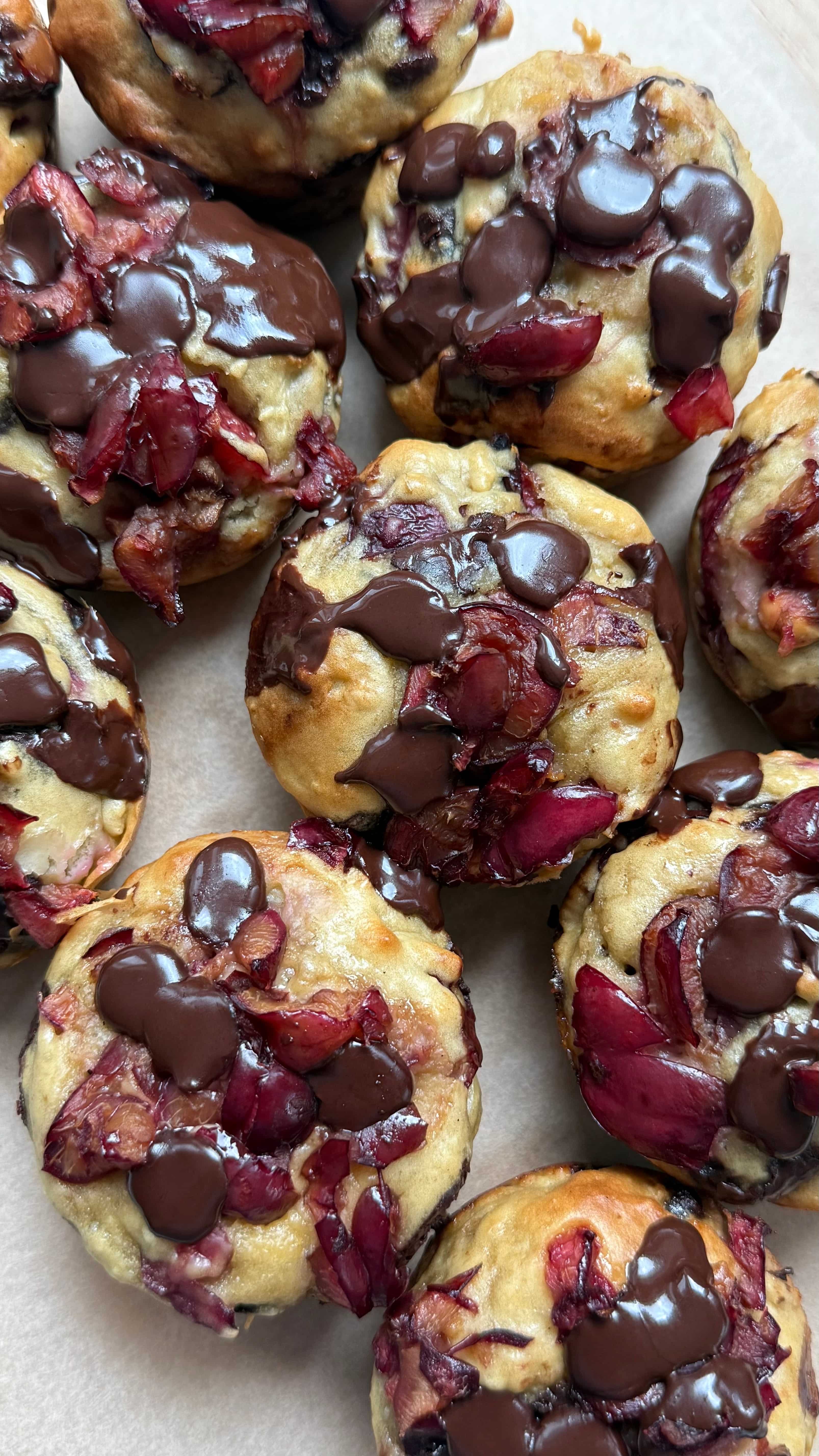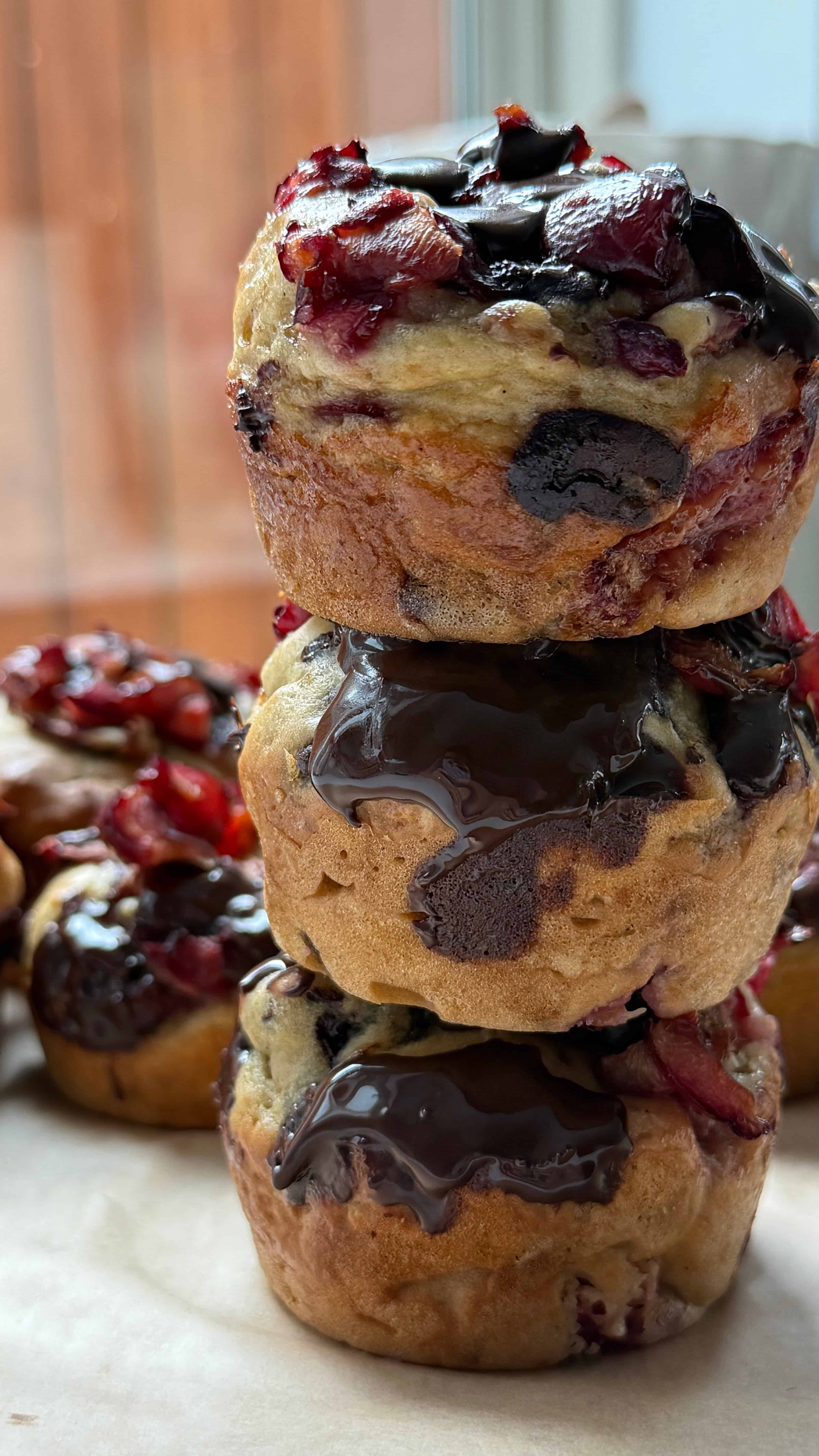 These cherry chocolate chip muffins are giving wholesome-meets-cozy in the best way. They’re naturally sweetened, packed with protein (thanks to Greek yogurt and eggs), and studded with juicy cherries and melty chocolate chips. Basically—like a chocolate-covered cherry in muffin form, but without the sugar crash.