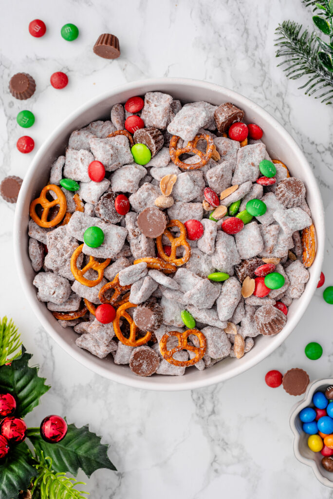 Christmas Muddy Buddies (Easy Holiday Puppy Chow Recipe)