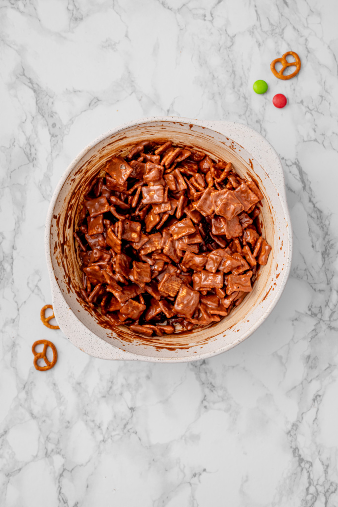 - Want chocolate-covered pretzels too? Add the pretzels during the cereal step and increase the chocolate chips by about ¼ cup so everything gets evenly coated.