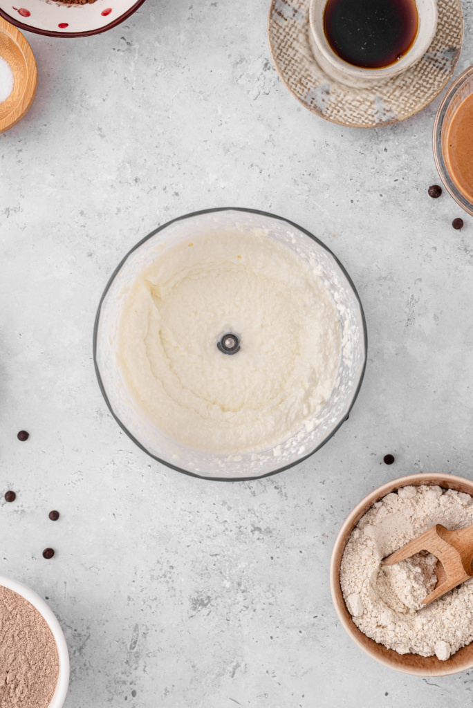 - Blend cottage cheese until smooth.