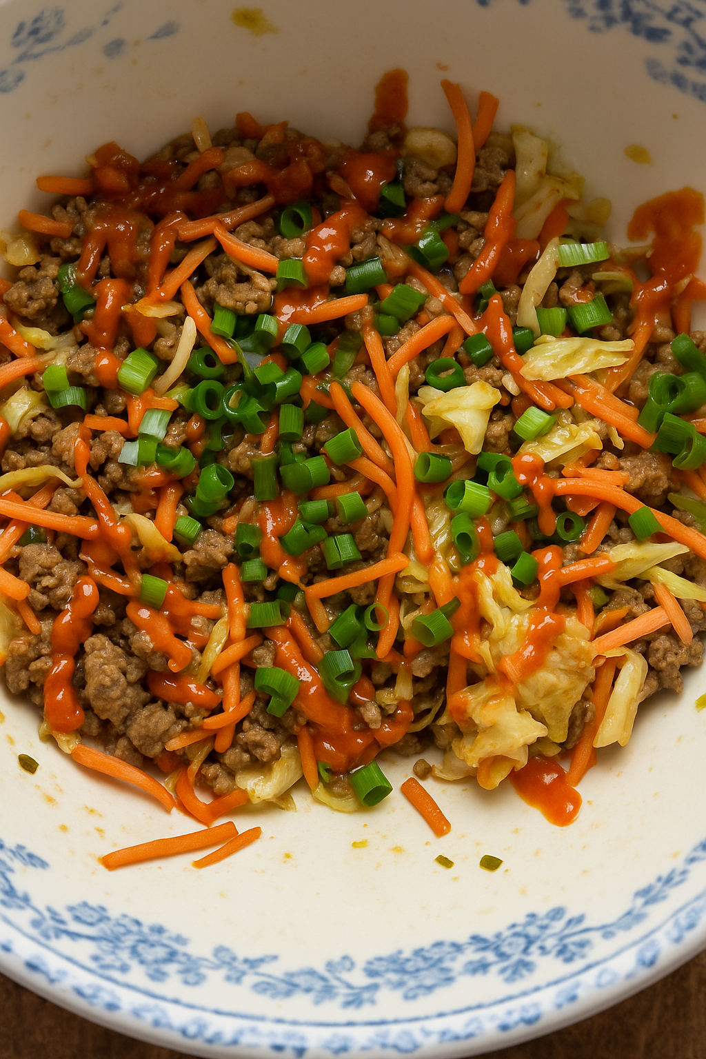 Make it spicier: If you’re into heat, don’t hold back! A little extra sriracha, red pepper flakes, or even diced jalapeños can give this egg roll in a bowl a bold kick. I like mine with a drizzle of extra sriracha on top, but you can easily dial it up or down depending on who you’re feeding.