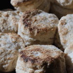 Grate the butter: Grating cold, frozen butter right into the flour makes it SO much easier to get those flaky layers without overworking the dough. It’s like the cheat code for biscuit texture.