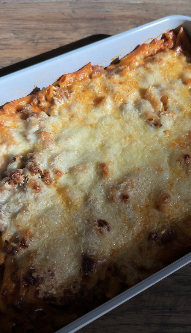 Mix thoroughly before baking: Make sure everything—pasta, meat, sauce, cheese, broth—is really well combined before it goes in the dish. This helps everything cook evenly and prevents dry spots.