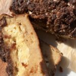 - Pour 3/4 of batter into the prepared pan and add cream cheese filling on top and top with remaining batter; sprinkle on crumble topping