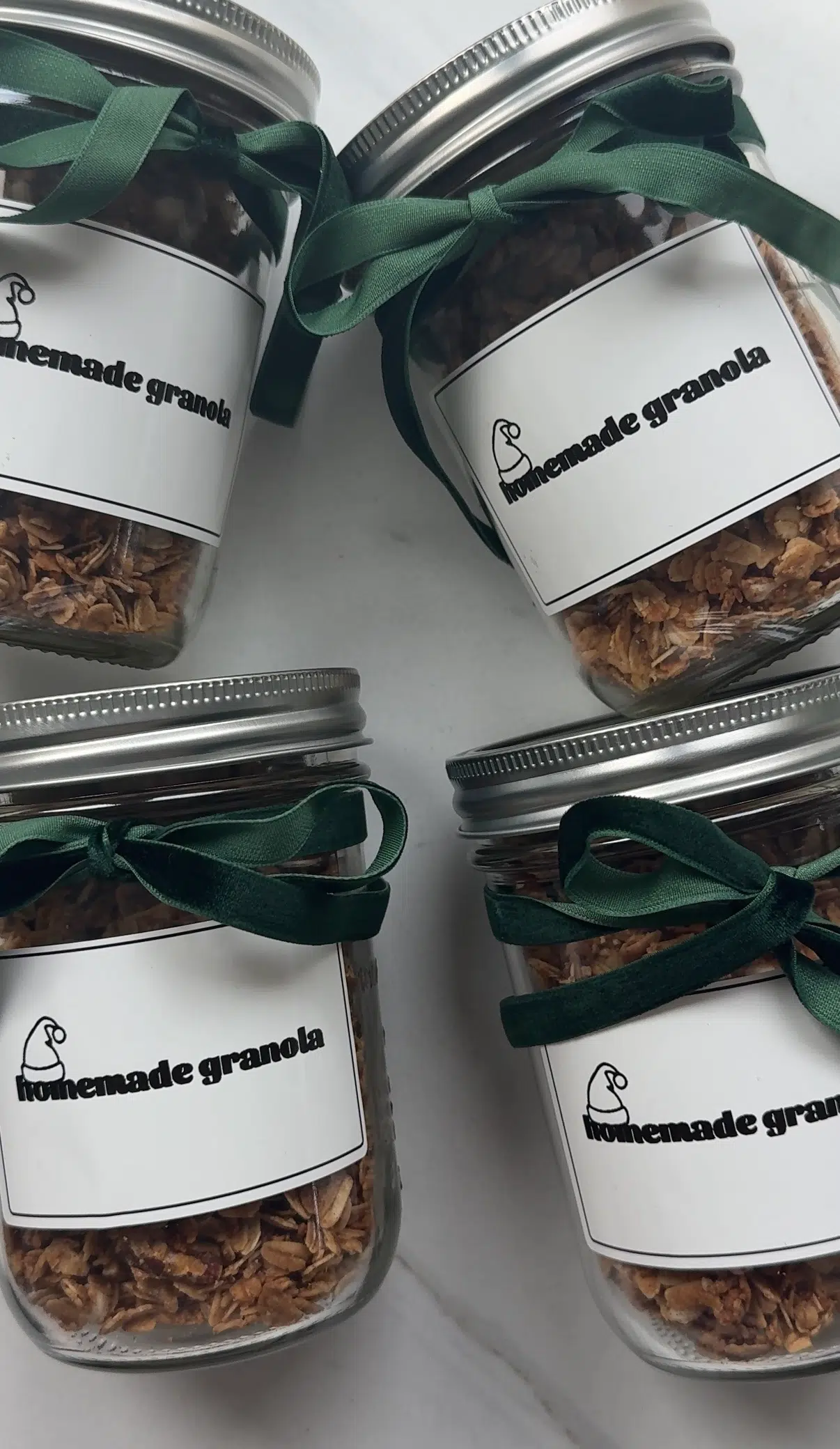 Homemade granola is one of those gifts that feels both thoughtful and practical. It’s something people actually use, it keeps well, and it works for breakfast, snacks, and even dessert. This version is the granola I make on repeat—simple ingredients, perfectly crunchy clusters, and just sweet enough without being overpowering.