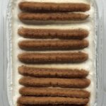 - Line a small dish with parchment and layer Biscoff cookies on the bottom.