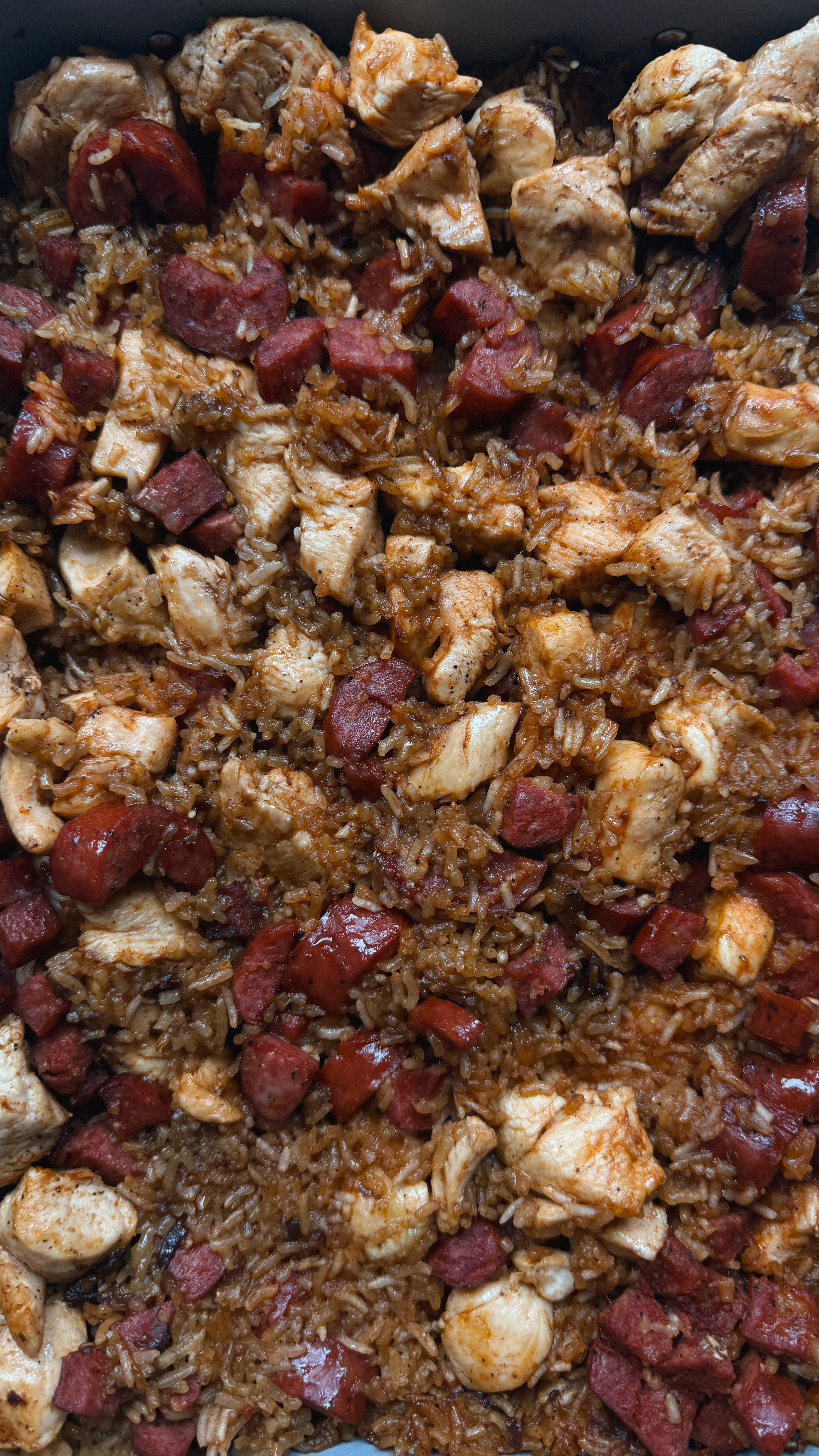 There are some recipes that just feel like home, and for me, this jambalaya is one of them. My mom has been making it for as long as I can remember, and it’s always been the dish that brings everyone to the table. The smell alone: smoky sausage, buttery rice, and that kick of Cajun seasoning, instantly takes me back to childhood.