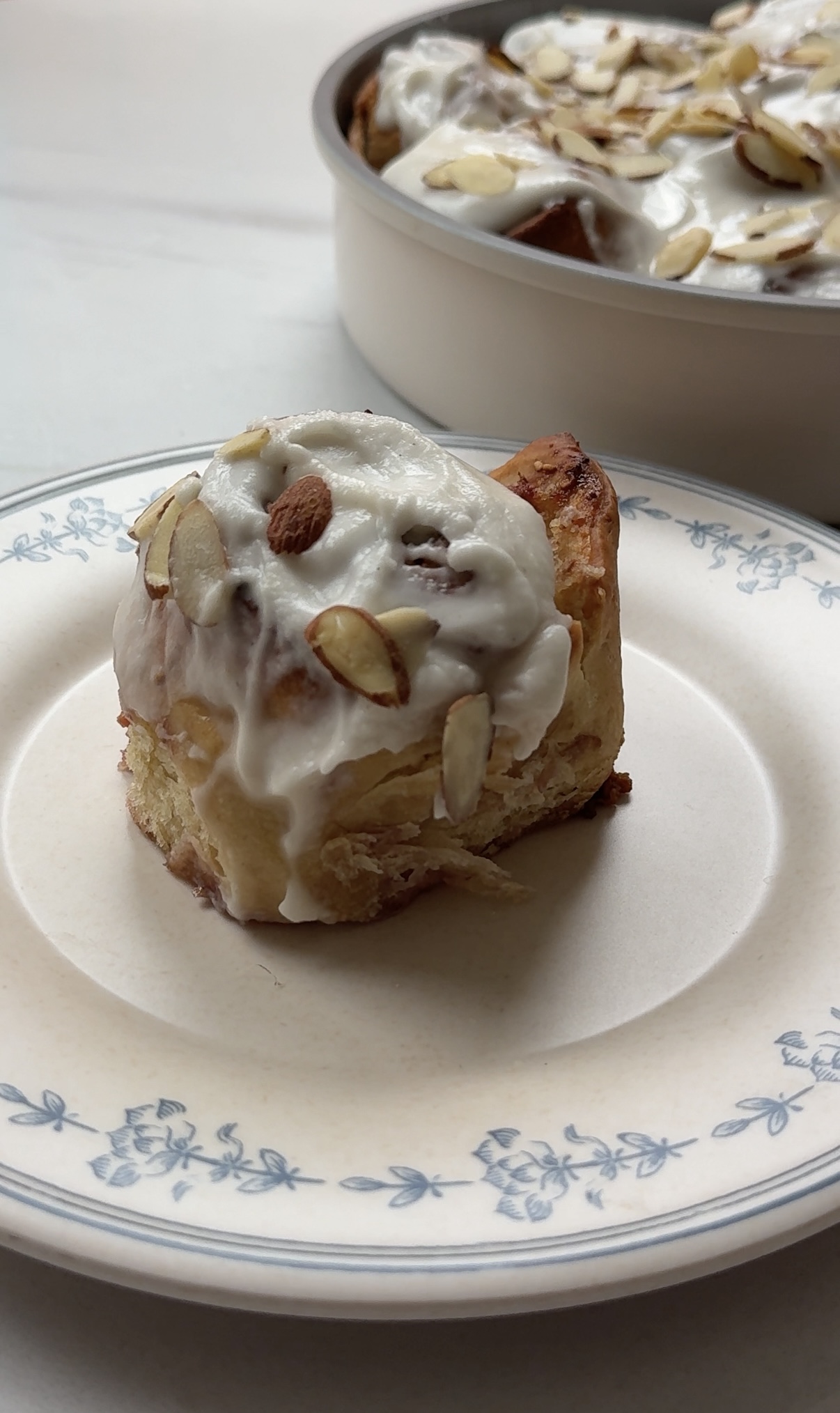 - Whisk together powdered sugar, milk, and vanilla bean paste until smooth and pourable. Drizzle over the warm rolls and finish with a scattering of sliced almonds. A little extra powdered sugar on top never hurts.
