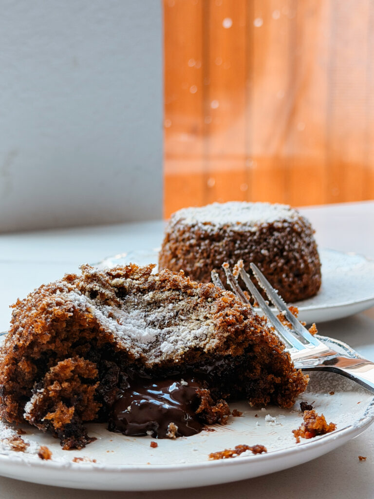 - Let cakes rest 2 minutes before serving. Slice open for molten center.