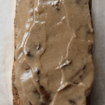 - While the bread bakes, blend the pitted dates, hot water, almond milk, vanilla, and sea salt in a blender or food processor until smooth; add more almond milk if needed for a drizzle-able consistency