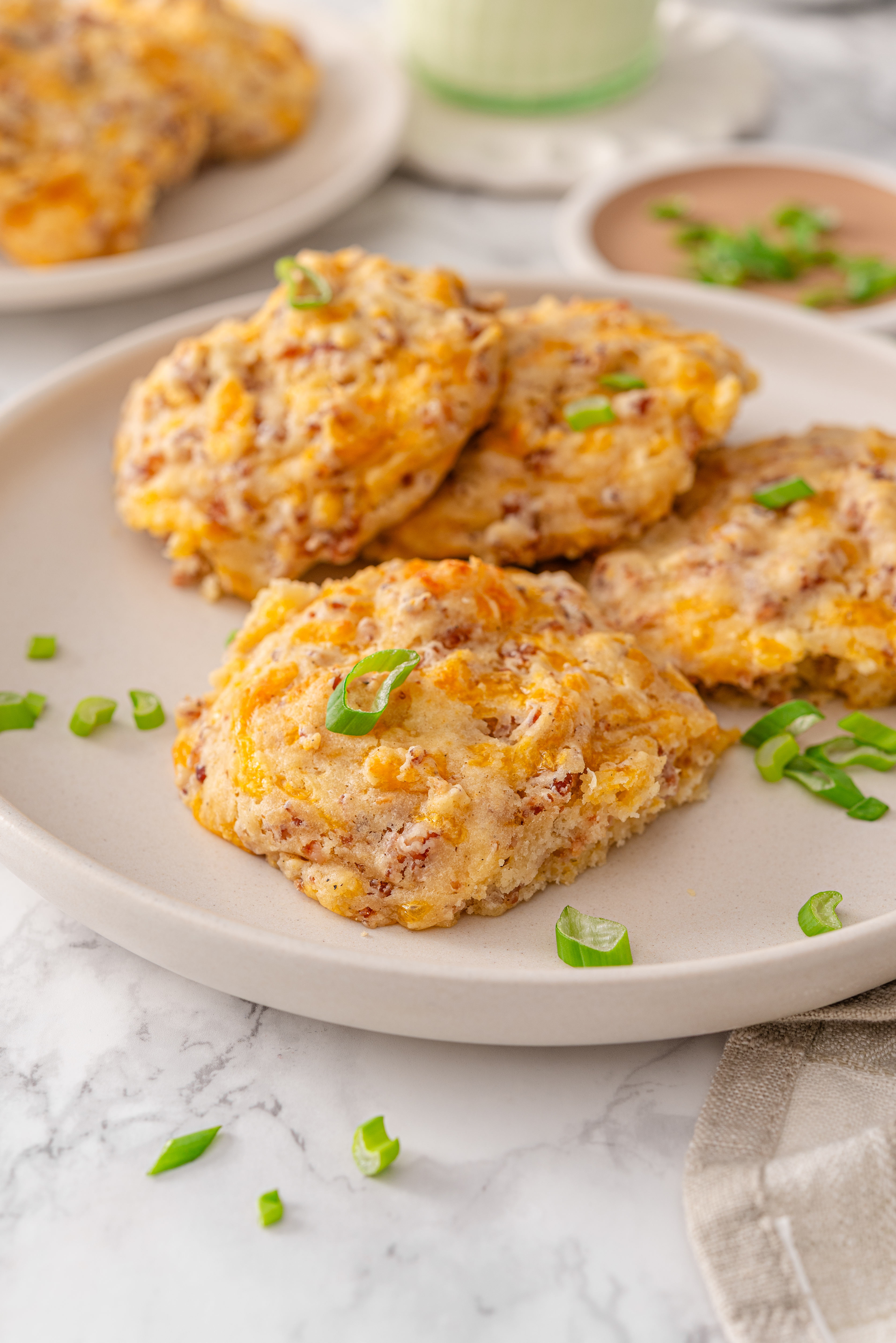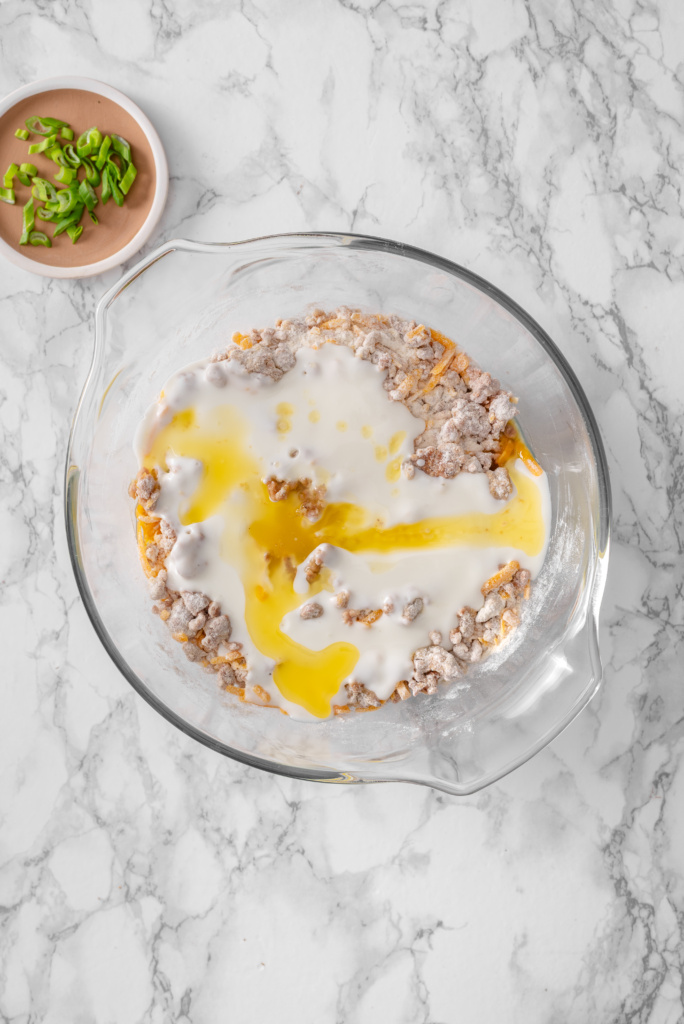 Sharp cheddar cheese brings bold flavor so the biscuits don’t taste bland. Sharp cheddar works best here because a little goes a long way.
