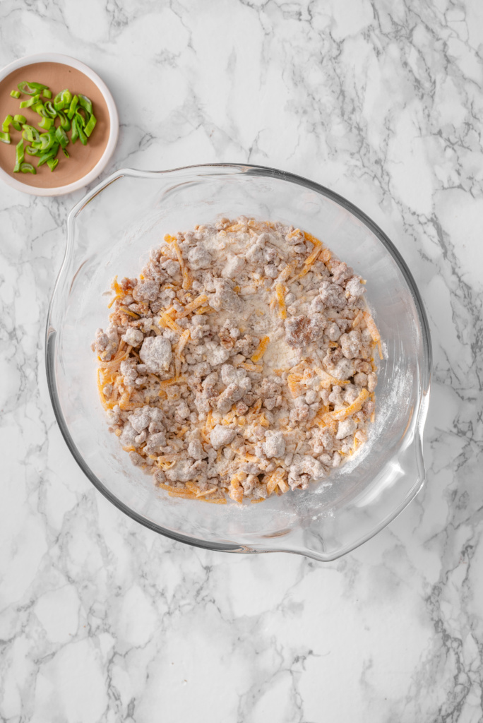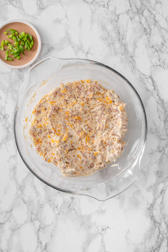 Breakfast sausage adds richness and savory flavor throughout the dough. Letting it cool slightly before mixing prevents greasy pockets and keeps the dough fluffy.