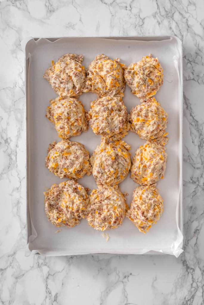 You want soft mounds that lightly touch in the pan so they bake into pull-apart breakfast biscuits.
