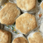 This Skillet Chicken Pot Pie Bake is a cozy weeknight dinner made with shredded chicken, frozen veggies, and a creamy homemade sauce, all topped with golden biscuits. It’s easy, comforting, and perfect for meal prep or feeding the whole family.